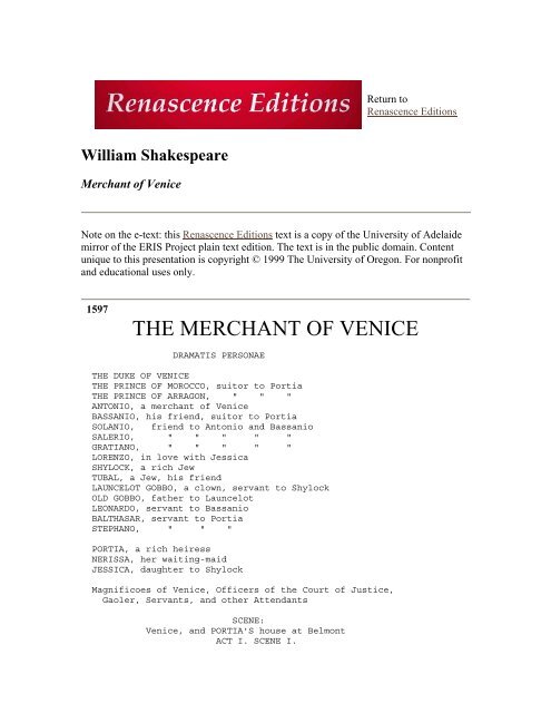 When she defeats Shylock and saves Antonios life she demonstrates that she has more common sense than the men around her. The plays title but he plays a relatively passive role. Portia and Jessica talk to Bassanio and Gratiano Portia nad Jessica are at this point dressed up as men.